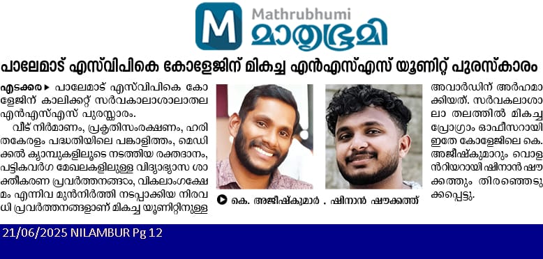 SVPK College receives University of Calicut Best NSS Unit, Best Programme Officer and Best NSS Volunteer 2023-24 awards